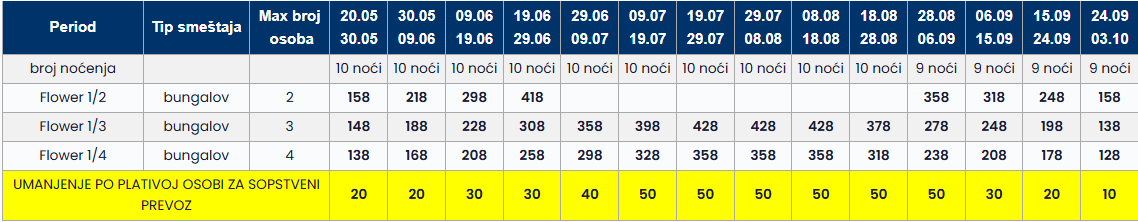 *Popuste odobravamo u smenama u periodu 20.05-03.10.2026, odnosno popuste ne odbravamo samo u prvoj smeni 10.05-20.05.2026 koja već ima promotivne cene.