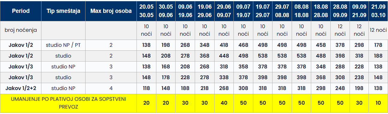 *Popuste odobravamo u smenama u periodu 20.05-03.10.2026, odnosno popuste ne odbravamo samo u prvoj smeni 10.05-20.05.2026 koja već ima promotivne cene.