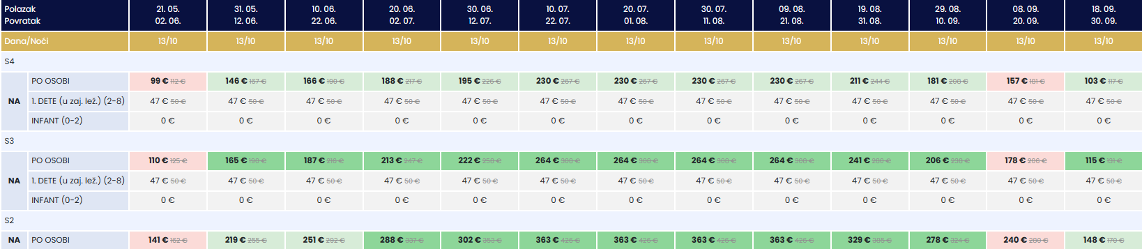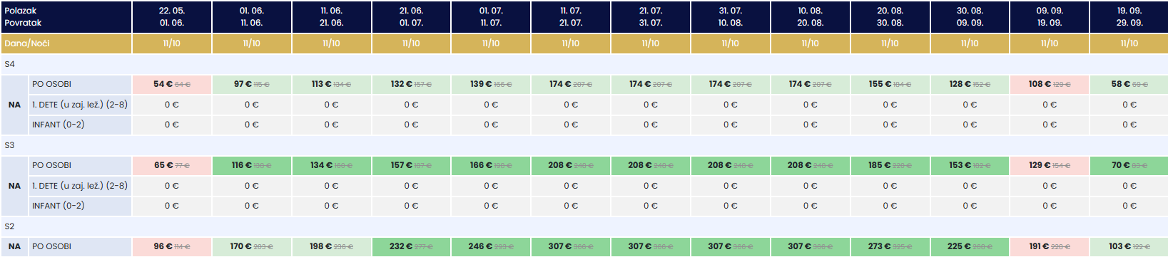 ** Garantovan polazak za putnike koji imaju uplaćen smeštaj iz Subotice, Kragujevca, Bora, Negotina (minimum 4 osobe); Kruševca, Zajecara i Knjaževca (minimum 2 osobe) i usputnih mesta; (osim za prve dve i poslednje dve smene gde je minimum 20 putnika)
