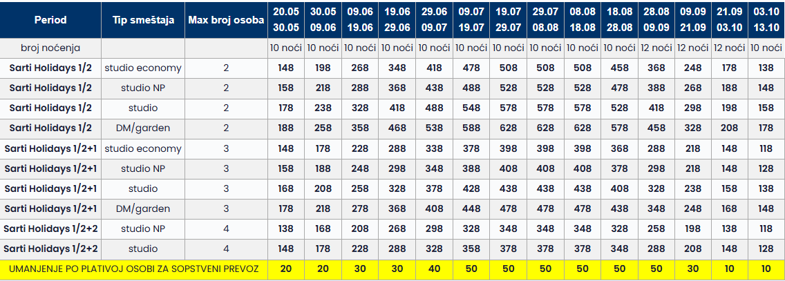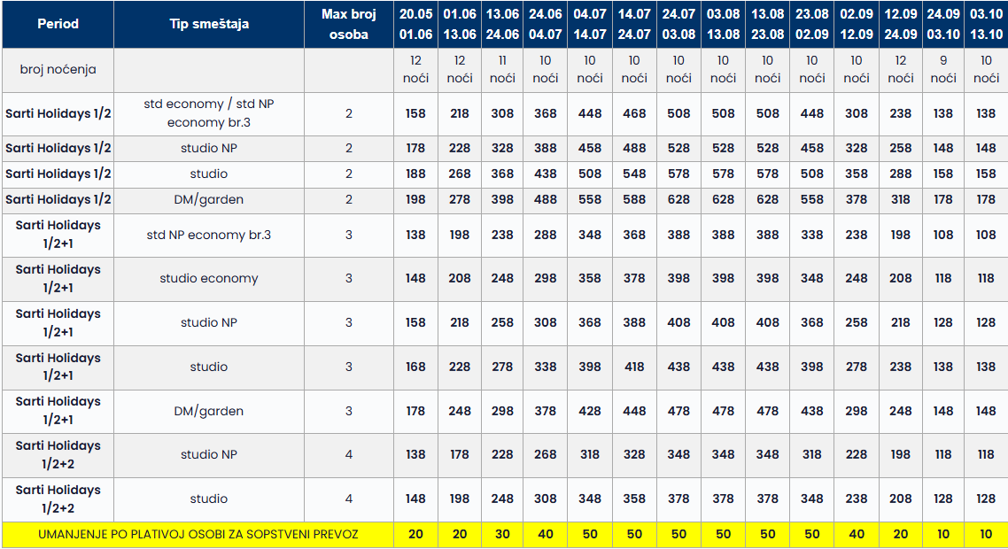 *Popuste odobravamo u smenama u periodu 20.05-03.10.2026, odnosno popuste ne odbravamo samo u prvoj smeni 10.05-20.05.2026 koja već ima promotivne cene.
